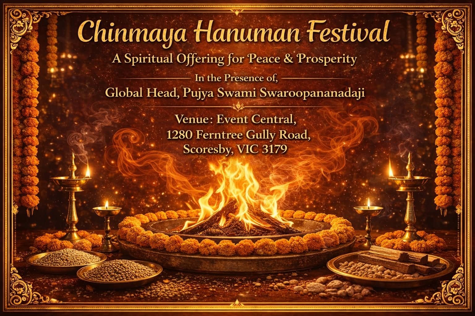 In 2026, we will mark a historic milestone – 75 years of Chinmaya Mission’s divine service. To honour this occasion, we are organising the largest Hanuman Havan ever held in Melbourne – a spiritual and cultural offering that brings together 30,000 devotees in an unforgettable experience of faith, devotion, and unity.
